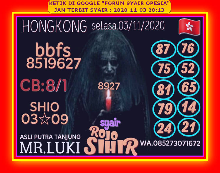 Syair HK Selasa 3 November 2020 Royal Syair